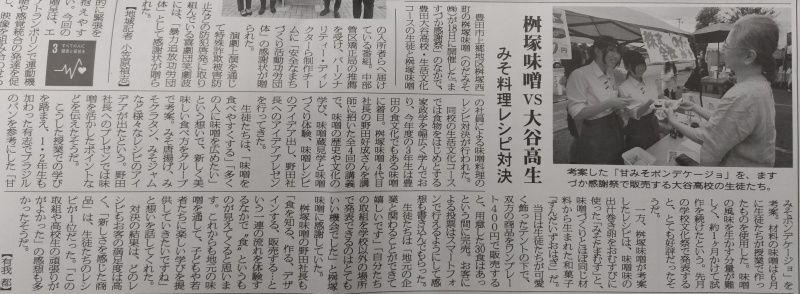 弊社で開催された10月18日「ますづか感謝祭」にて、弊社社員と豊田大谷高校・生活文化コースの生徒と味噌料理のレシピ対決が行われ、地元新聞の矢作新報に紹介されました